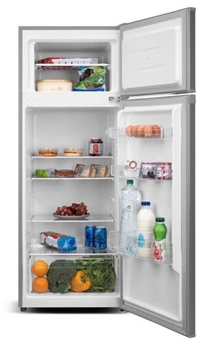 Chladnička s mrazákem nahoře o celkovém užitném objemu 206 l. Objem chladničky 169 a objem mrazničky 37 l.