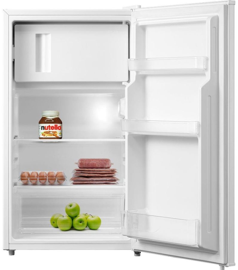 Chladnička o celkovém užitném objemu 80 l. Objem chladničky 68 l a objem mrazničky 12 l.