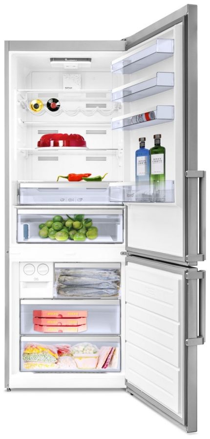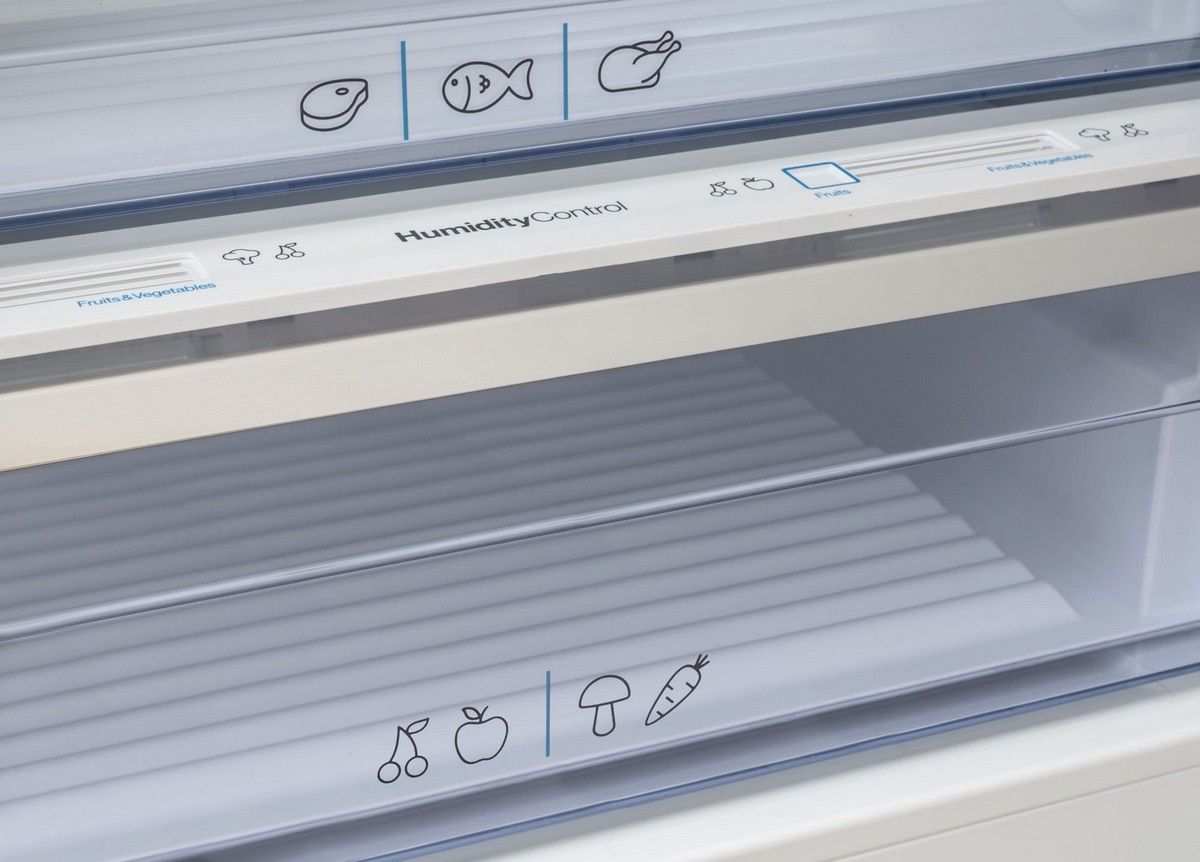 Vnitřek chladničky je členěn do několika zón, abyste si mohli přizpůsobit uspořádání podle svých potřeb. Chladící prostor má objem 344 litrů, z čehož 157 litrů připadá na část s nulovou zónou, kde můžete uchovat maso a ryby bez obav o jejich životnost. Další zásuvku s regulací vlhkosti a filtrem UltraFresh můžete použít na uchování zeleniny a ovoce. Vnitřní prostory doplňují 4 police z tvrzeného skla, z nichž jedna je dělená a tvarovaná drátěná polic pro lahvové nápoje. Dveřní police jsou vyrobeny z kvalitního plastu.