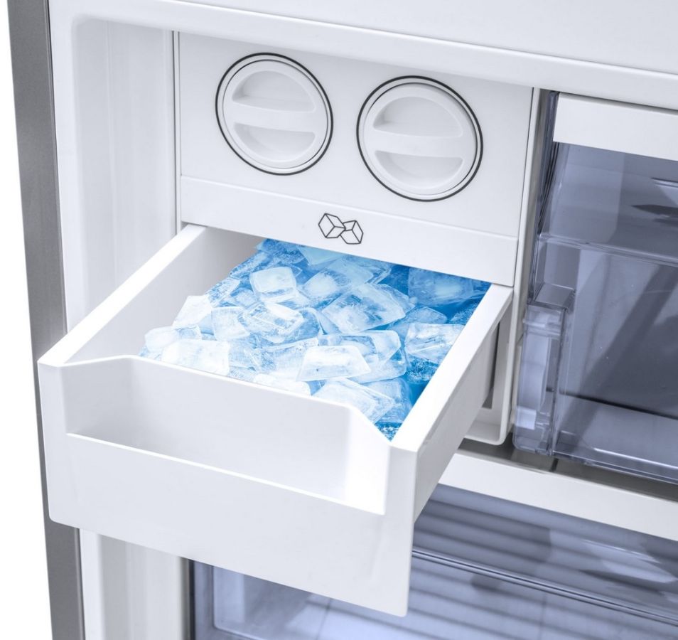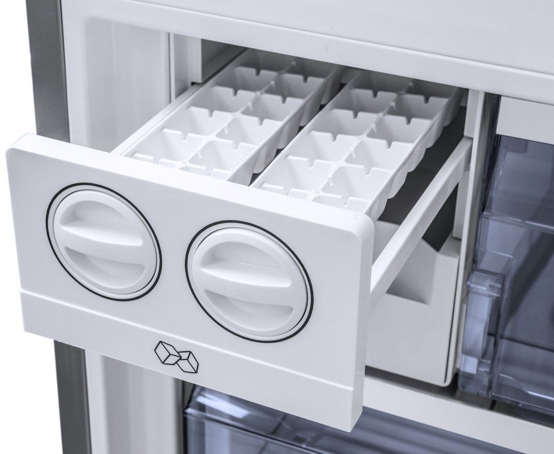 Mrazicí část nabízí objem 137 litrů a disponuje dvěma prostornými zásuvkami a jednou skleněnou polici s výklopnými dvířky, kterou můžete využít na uchování různých druhů krabiček. Pro snadnou přípravu osvěžujících nápojů má C11 integrovaný výrobník ledu, na který nemusíte připojovat žádné další zařízení. Stačí pouze nalít vodu do misek v horní části a čekat, až zmrzne. Poté jen jednoduše otáčením kolečka ledové kostky vypadnou do zásobníku ve spodní části.