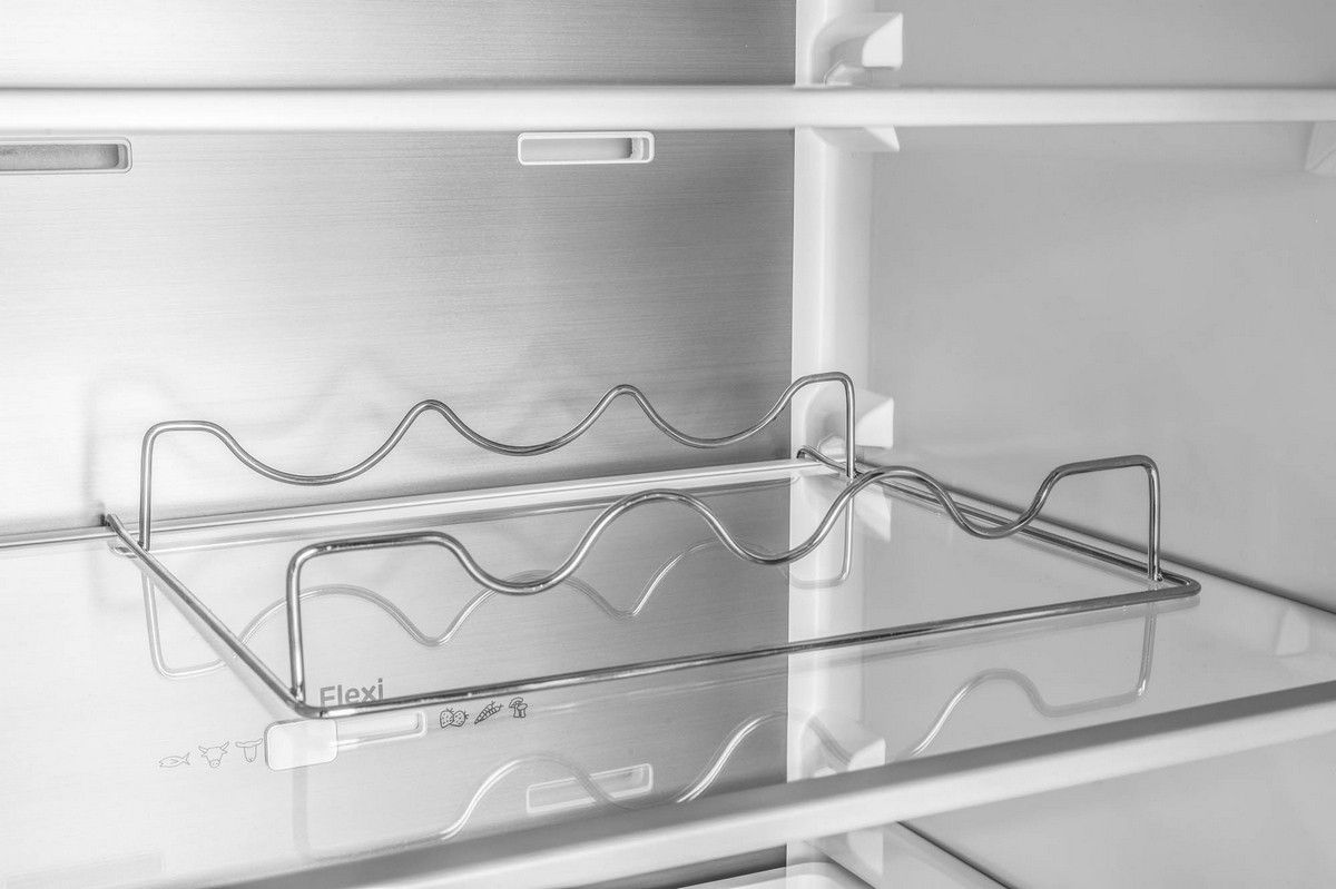 Potraviny můžete umístit do celkem čtyř polic z bezpečnostního skla, přičemž tři z nich jsou výškově nastavitelné. Nechybí ani polička na láhve a ve dveřích chladničky najdete celkem čtyři police. U této chladničky najdete integrované madlo.