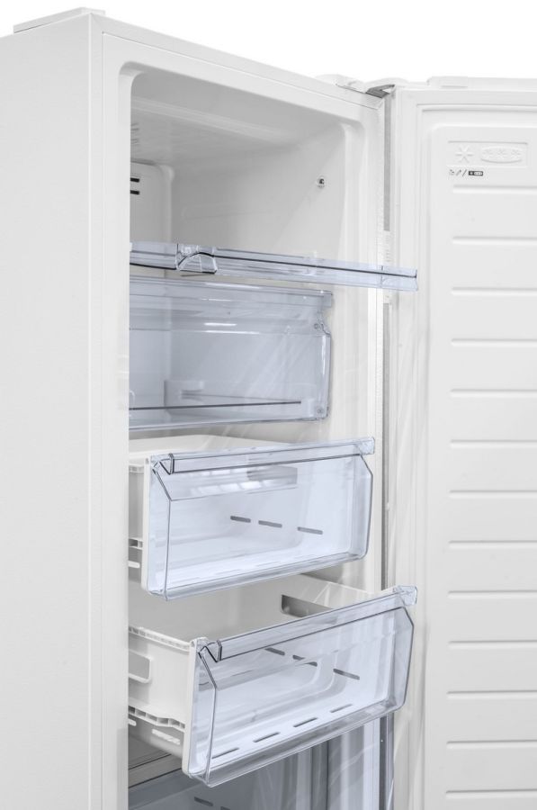 Mrazicí režim využívá technologii NoFrost, která zajišťuje automatické odmrazování a zabraňuje tvorbě námrazy. Zmrazovací kapacita dosahuje 11,1 kg za 24 hodin, což je ideální pro rychlé zmrazení většího množství potravin. I při výpadku proudu si mraznička udrží optimální teplotu až po dobu 8 hodin, což minimalizuje riziko znehodnocení potravin. Vnitřní uspořádání zahrnuje pět prostorných zásuvek a dvě klapky, které umožňují přehledné a efektivní skladování.