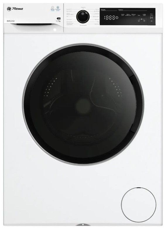 Představujeme pračku Romo RWF2476A – efektivní, tichou a elegantní v bílém provedení s kontrastním černým displejem. Tato pračka nabízí kapacitu pro 7 kg prádla a díky bezkartáčovému motoru je nejen energeticky úsporná, ale také mimořádně tichá. S širokou škálou programů a funkcí, jako je parní praní a odložený start, přináší do vaší domácnosti pohodlí a spolehlivost.