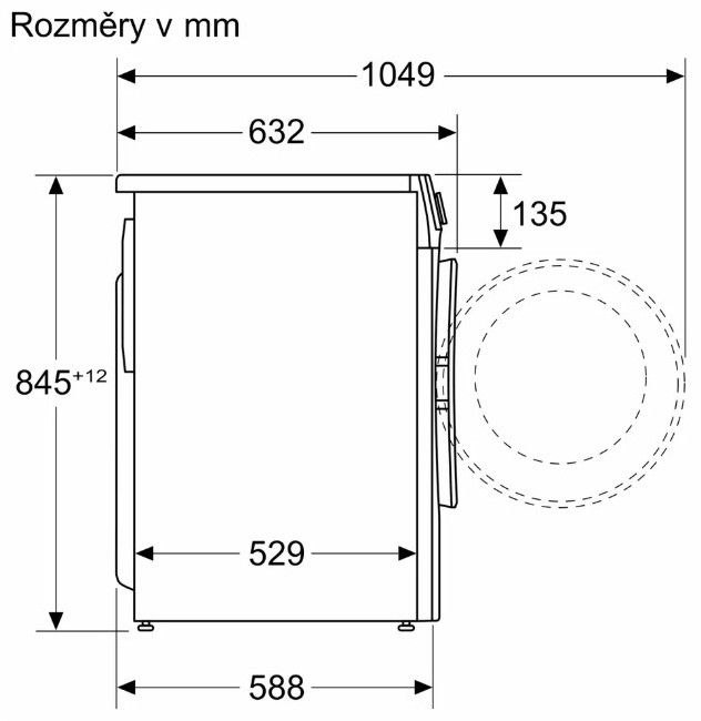Hloubka s otevřenými dvířky 90 stupňů: 104,9 cm