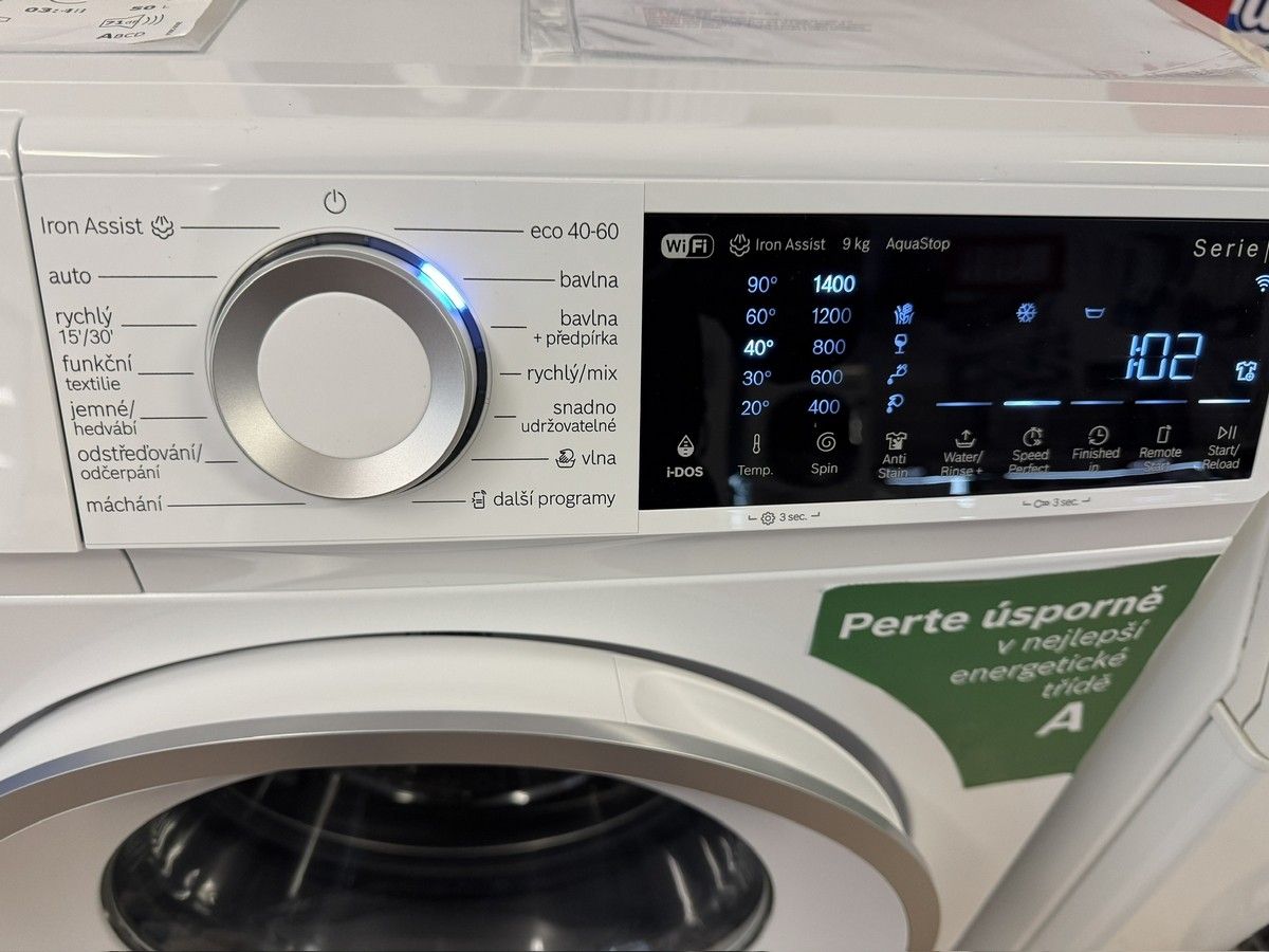 - Přizpůsobení praní: automatický program pro jemné prádlo, lehké žehlení díky páře, outdoor, odstředění/odčerpání, rychlý/mix, máchání, super 15'/30', odložení konce programu, volba skvrn, start/pauza s reload funkcí (možnost doplnění prádla), teplota, SpeedPerfect, nastavení počtu otáček