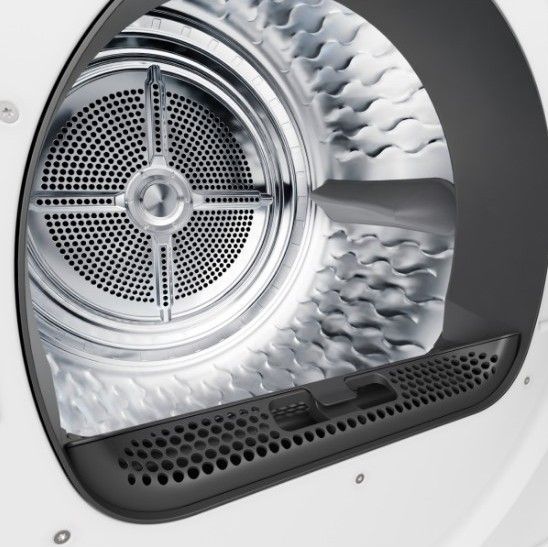 Technologie CompleteDry využívá inteligentní senzor, který během sušení sleduje vlhkost v celém objemu prádla, nejen na jeho povrchu. Díky tomu dokáže rozpoznat vlhkost uvnitř objemných kusů, jako jsou peřiny nebo polštáře, a sušička podle toho průběžně upravuje sušicí cyklus. Výsledkem je prádlo skutečně suché v celé své vrstvě.