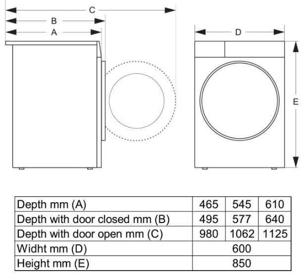 - Další vlastnosti: Předpírka, Jednoduché žehlení prádla, Přeskočit odstředění, Nastavení teploty, Vyšší hladina vody, Rýchlý program, Přidání prádla, Ukládání osobních nastavení, Pauza, Čerpadlo stop, Nastavení konce praní