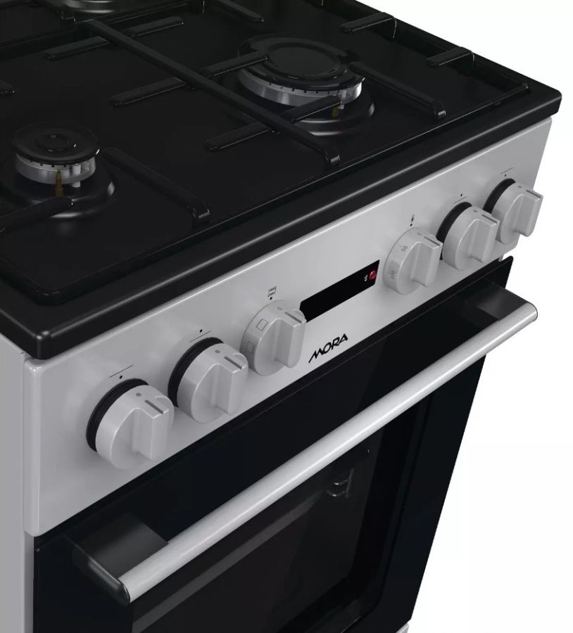 Tento kombinovaný sporák Mora K 5255 A1S v atraktivním designu INOX Look vám kromě tradičního pečení otevře dveře k dalším moderním tepelným úpravám pokrmu. Připravíte s ní jídla rychle a šetrně, takže si zachovají maximum vitamínů a stopových prvků. Výkonná multifunkční trouba s objemem 70 l v energetické třídě A má celkem osm různých programů, včetně horního a dolního topného tělesa , spodního tělesa s ventilátorem, horkovzdušné pečení či zvláště šetrné rozmrazování, které Vám ušetří opravdu velké množství času. Sporák disponuje také oblíbeným Pizza programem, díky kterému vykouzlíte báječnou pizzu jako z pravé italské restaurace. Hotovky většinou volíme tehdy, když nás tlačí čas. Se speciálním programem pro hotová a mražená jídla ho ušetříte ještě víc, protože si připravíte chutný oběd rychleji, bez nutnosti předehřívání trouby. Výsledek však bude dokonalý, a tak si v klidu vychutnáte třeba kuřecí nugety, lasagne, hranolky nebo croissanty. Uvnitř se nachází praktické osvětlení, takže budete mít po celou dobu pečení dokonalý přehled. Ve spodní části sporáku je praktický úložný prostor, do kterého snadno uložíte příslušenství v podobě roštu a MAXI pekáče XXL o objemu až 8 l. Perfektní vyčištění vnitřního prostoru po každém pečení zajistí funkce ECO CLEAN, díky které odstraníte i větší nečistoty bez nutnosti použít čisticí prostředek. Plynové hořáky s pojistkami STOP GAS a integrovaným zapalováním jsou kryté dvoudílnou mřížkou STABIL PLUS, která zajišťuje bezpečný posun nádobí ve všech směrech.