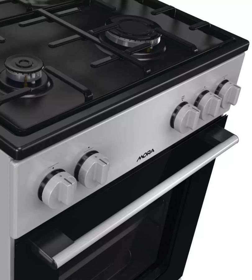 Stříbrný plynový sporák MORA P 2252 A1S s moderním skleněným příklopem energeticky spadá do úsporné třídy A a jeho užitný objem činí 70 litrů. Integrované zapalování hořáků je řešeno přímo v samotném ovládacím knoflíku plynu, stačí pouze jednou rukou otočit požadovaným knoflíkem a elektrická jiskra automaticky zapálí plynový hořák. Hořáky jsou kryté dvoudílnou mřížkou STABIL PLUS, která zajišťuje bezpečný posun nádobí ve všech směrech. Plynové hořáky i trouba jsou osazené pojistkou STOP GAS, která zajistí pocit bezpečí při vaření Vám i Vašim blízkým. Integrované zapalování hořáků je řešeno přímo v samotném ovládacím knoflíku plynu, stačí pouze jednou rukou otočit požadovaným knoflíkem a elektrická jiskra automaticky zapálí plynový hořák, který jste si vybrali. Ve spodní části sporáku je praktický úložný prostor, do kterého snadno uložíte příslušenství v podobě roštu a MAXI pekáče XXL o objemu až 8 l.
