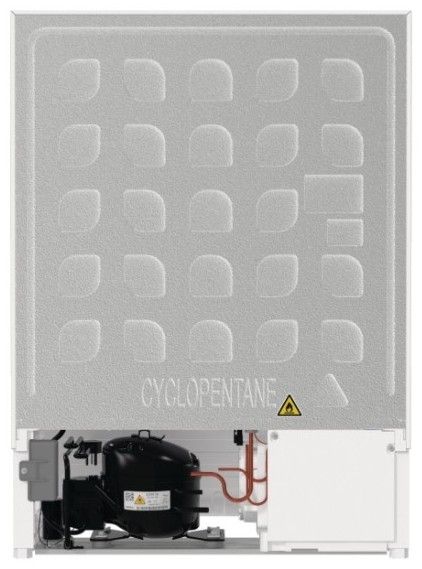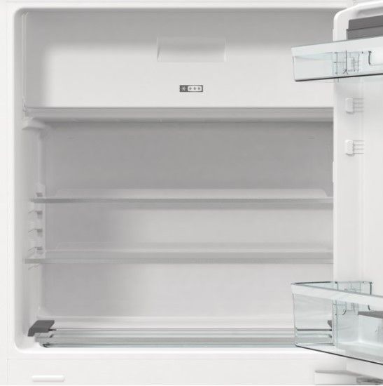 Vestavná chladnička o celkovém užitném objemu 121 l. Objem chladničky 104 l a objem mrazničky 17 l.