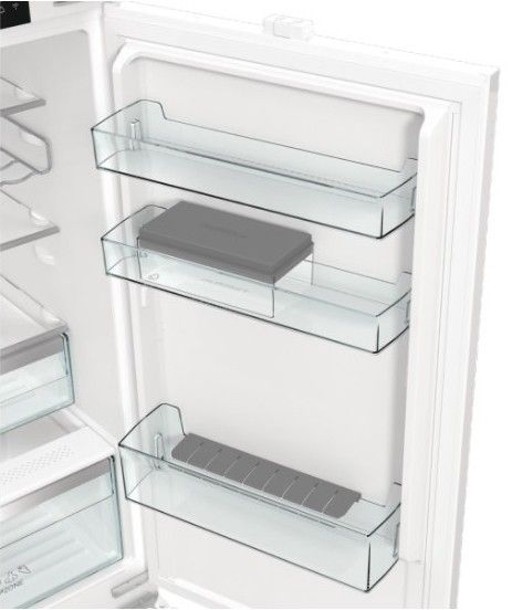 Dveře chladničky nabízejí dostatek prostoru pro uložení i těch největších skleněných či plastových lahví. Speciální zábrana drží lahve pevně na místě a zabraňuje jejich pohybu nebo poškození při otevírání a zavírání dveří.