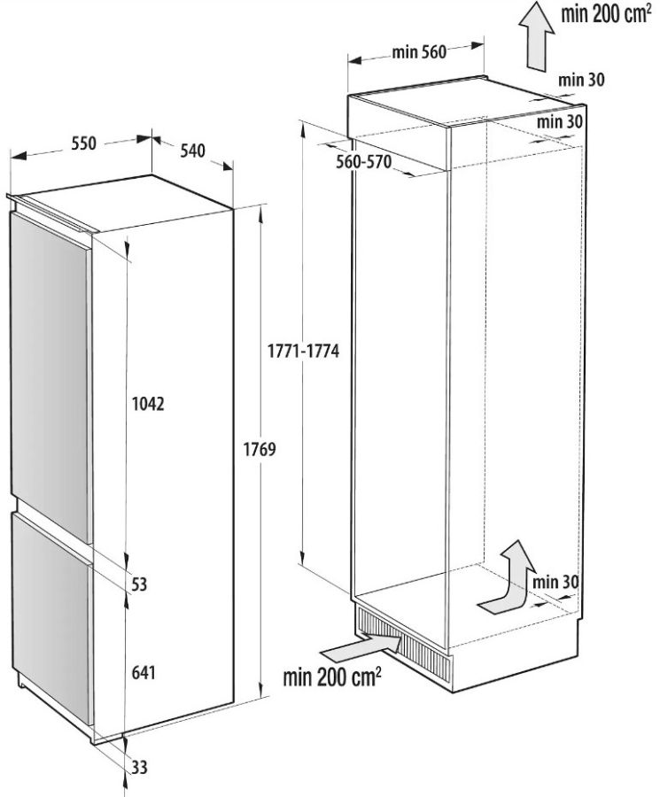 Vestavná kombinovaná chladnička o celkovém užitném objemu 270 l. Objem chladničky 195 l a objem mrazničky 75 l.