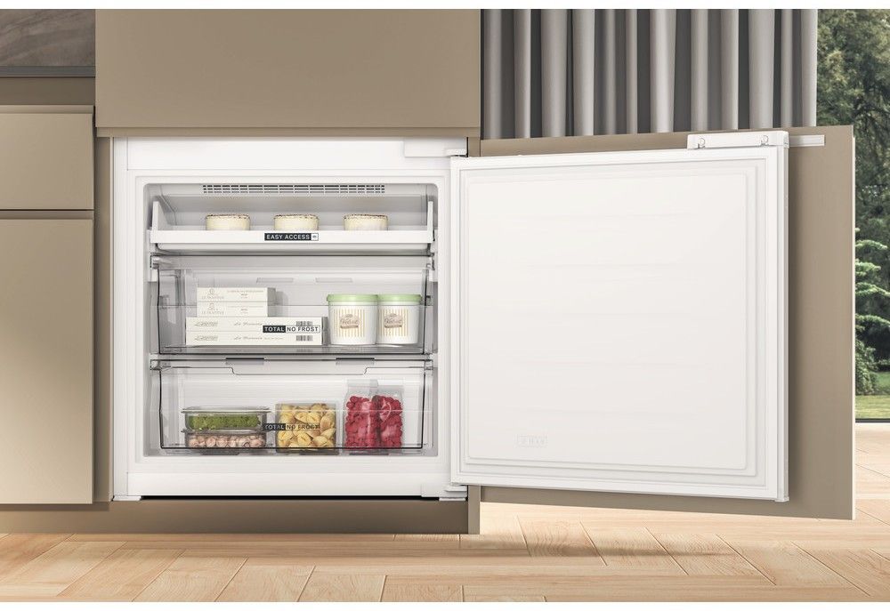 Nová vestavná Total No Frost chladnička s mrazničkou nabízí největší kapacitu* ve své kategorii, která dosahuje 394 litrů díky dodatečné šířce 15 cm a o 50 % většímu** úložnému prostoru.