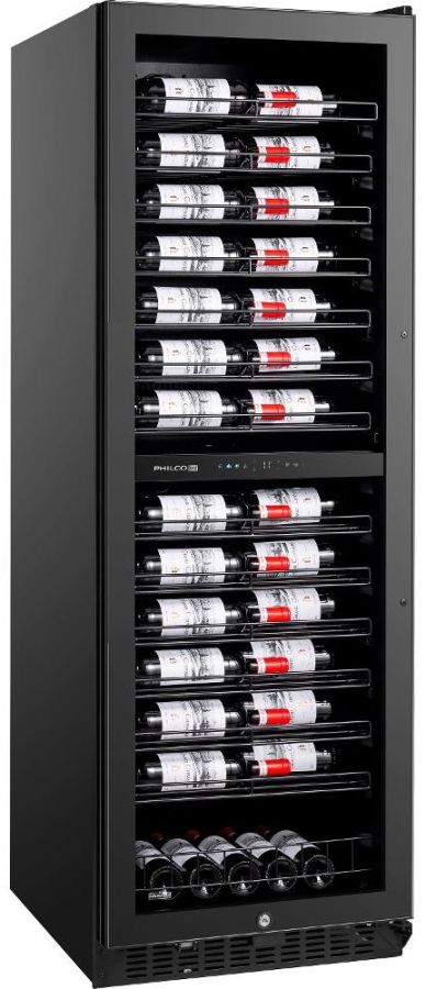 Dvouzónová kompresorová vinotéka Philco PW 131 GDC je skvělou volbou pro milovníky vína, kteří chtějí mít po ruce bohatou sbírku. Vinotéka pojme až 131 lahví, nabídne také dvě nezávislé zóny chlazení a police LabelView, se kterými máte dokonalý přehled.