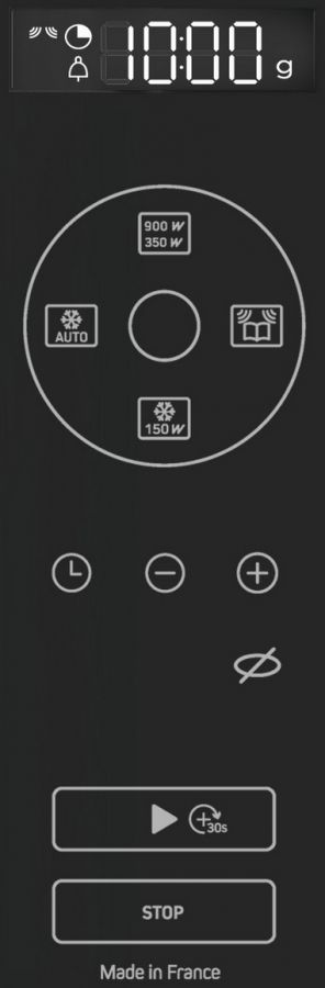 Tato funkce umožňuje jednoduše rozmrazit pokrmy do 500 g až 6 krát rychleji než bez použití této funkce. jednoduše vyberete druh jídla a jeho váhu a trouba sama navrhne ideální dobu rozmrazování. Například 4 x 100 g hamburger rozmrazíte do 1 min. a 40 sekund.