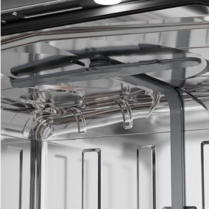 - Spodní koš: 4 sklopné/dělitelné zadní držáky talířů, Vyšší zásuvka s hrubým vodorovným mřížkováním vpředu nahoře, Sklopná / dělitelná zadní police na víno, Držák vázy a láhve umístěný nad tryskou Jet Spray™, Sklopné/dělitelné zadní držáky talířů, Rukojeť s logem značky z nerezové oceli, Rukojěť, Pevná mřížkovaná základna