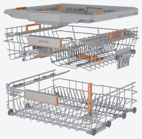 Koše jsou vybaveny zvýrazněnými pohyblivými prvky a přizpůsobitelným rozložením pro snadné nakládání. Opravdu jednoduchý dvouúrovňový systém nastavení umožňuje umístit i ty největší hrnce a talíře. Stojan na talíře ve spodním koši lze snadno složit. Příbory lze perfektně organizovat na speciálním tácu, kde jsou umístěny odděleně pro dosažení dokonalých výsledků mytí i sušení. Každý detail je pečlivě navržen pro co nejjednodušší manipulaci.