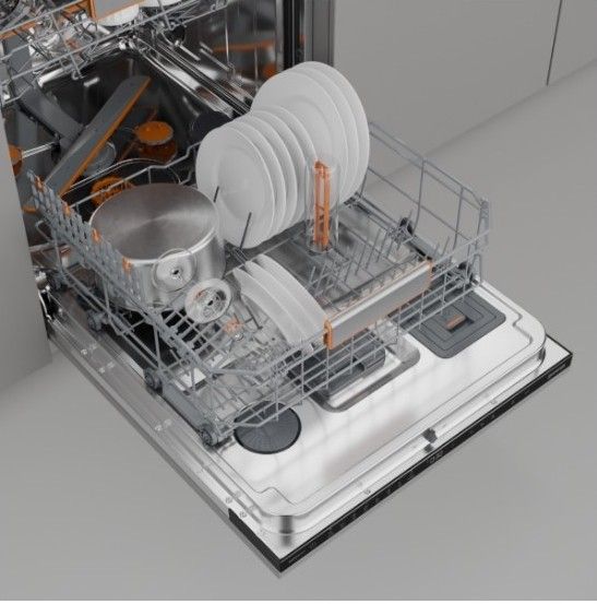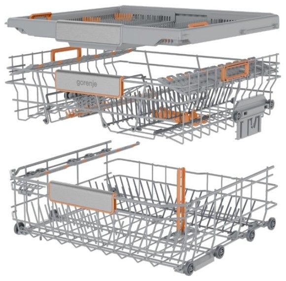 Koše jsou vybaveny zvýrazněnými pohyblivými prvky a přizpůsobitelným rozložením pro snadné nakládání. Opravdu jednoduchý dvouúrovňový systém nastavení umožňuje umístit i ty největší hrnce a talíře. Stojan na talíře ve spodním koši lze snadno složit. Příbory lze perfektně organizovat na speciálním tácu, kde jsou umístěny odděleně pro dosažení dokonalých výsledků mytí i sušení. Každý detail je pečlivě navržen pro co nejjednodušší manipulaci.