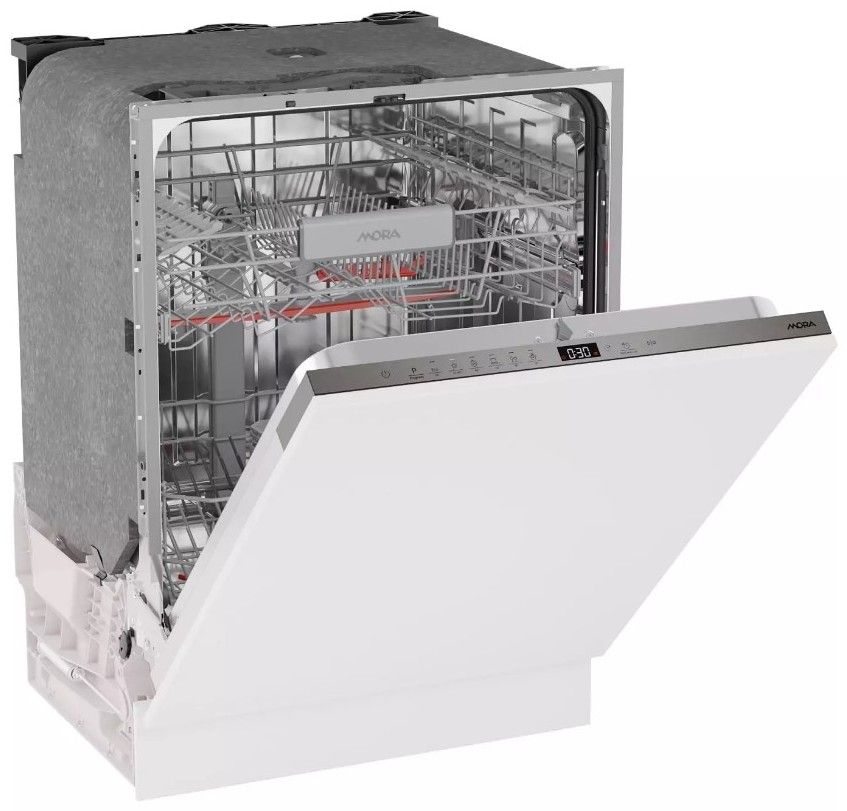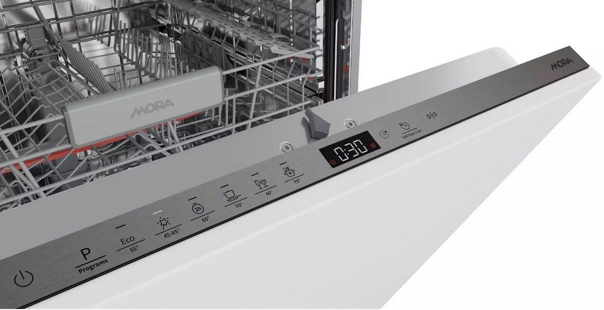 Vestavná plně integrovaná myčka Mora IM 6434 se 2 zásuvkami je vhodná i do větších rodin, jelikož je do ní možné umístit až 14 jídelních sad najednou. Příborový košík poskytuje maximální flexibilitu při mytí příborů. Podle vašich aktuálních potřeb můžete buď celý košík naplnit příborem nebo jej rozdělit na dva samostatné košíky, které lze různě umístit v rámci spodního koše myčky. Takto do myčky vložíte maximum nádobí. Skrytý ovládací panel je opatřen dotykovým ovládáním s displejem a mnoha praktickými funkcemi, jako je například RychléMytí, které umožňuje zkrátit délku vybraných programů. Zvolíte-li funkci SušeníPlus, po ukončení programu se automaticky pootevřou dvířka, aby tak unikla pára a následný sušicí cyklus byl efektivnější a energeticky úsporný. Energii pomáhá šetřit i možnost připojení přímo na teplou vodu pomocí speciální hadice, odolávající vysokým teplotám. Samozřejmostí je úsporný ECO Program nebo AUTO Program, který sám zvolí optimální parametry mytí. Praktický je i odložený start až o 24 hodin. Myčka má navíc praktický samočisticí filtr, a tak automaticky odstraní zbytky mastnoty a jídla ve filtru a zamezí nesprávnému chodu spotřebiče. Má také automatický program pro čištění celého vnitřku myčky včetně ramen a trysek. Se systémem AquaStop se nemusíte obávat nemilého překvapení v podobě vytopení.