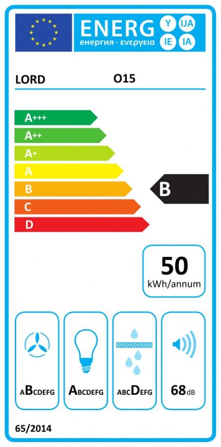 LORD O15 je vestavný – výsuvný odsavač par v černé barvě s nízkou spotřebou elektrické energie. Jeho spotřeba je pouze 53 kWh/rok a řasí se tak do energetické třídy B. Jeho provoz vás tedy není vůbec nákladný.
