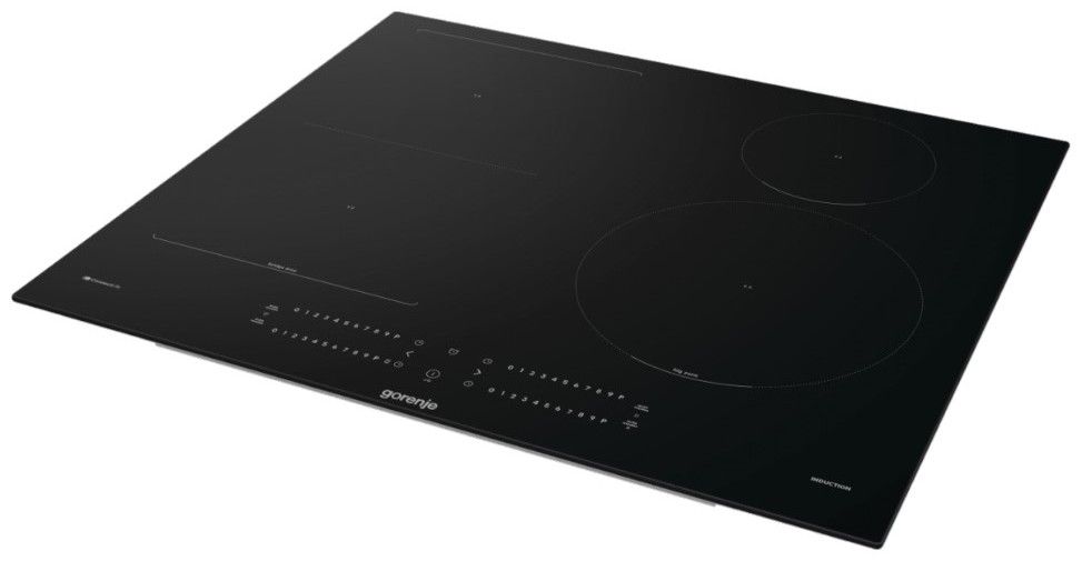 Indukční vestavná sklokeramická deska se 4 indukčními zónami, dotykovým ovládáním a dětskou bezpečnostní pojistkou.