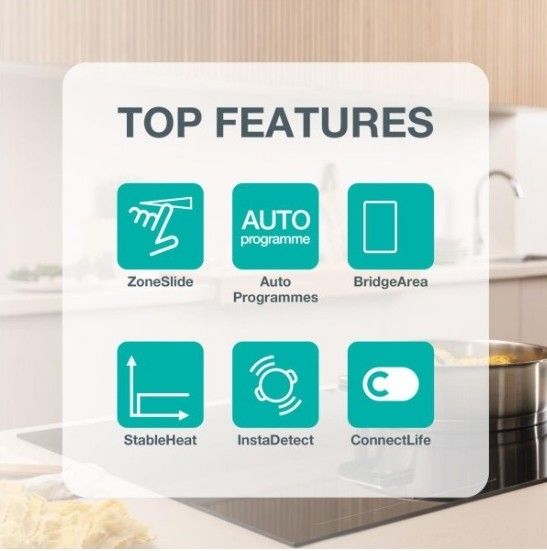 Naše indukční varná deska rozpozná vaše nádobí během pouhých 0,2 sekundy, bez ohledu na to, kam ho umístíte nebo přesunete. Inteligentní funkce rozpoznání nádoby automaticky aktivuje správnou varnou zónu na ovládacím panelu, takže můžete ihned začít vařit.