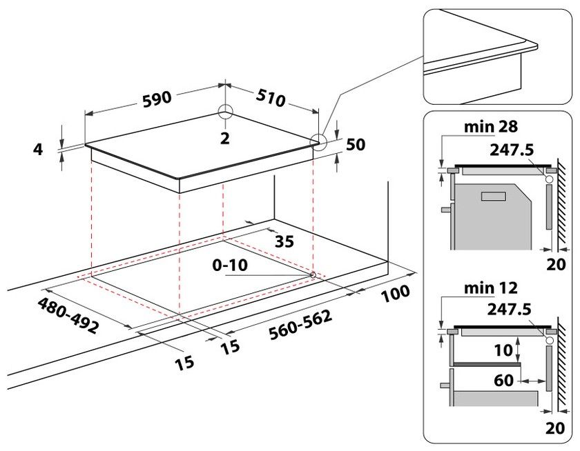 Přední část výrobku je zkosená, což zajišťuje lepší integraci s pracovní deskou.