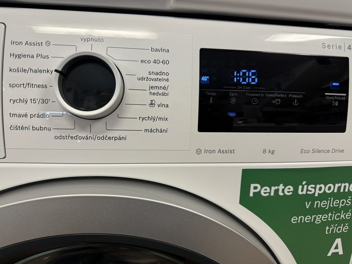 Používáním úsporných domácích spotřebičů šetříte cenné zdroje. Proto byste při nákupu domácího spotřebiče měli vzít v úvahu nízké hodnoty spotřeby energie a vody. Energetický štítek poskytuje informace o třídě účinnosti, hladině hluku, kapacitě, spotřebě energie a vody příslušného spotřebiče. Nejvýznamnější změnou u nových energetických štítků je vyloučení tříd energetické účinnosti se znaménkem plus, jako byla například třída A+++. Nový rozsah tříd účinnosti je u praček od A do G. Díky našemu vysoce účinnému systému úspory energie dosahují pračky Bosch nejlepší energetické třídy A při každém praní a to bez kompromisů v čistotě prádla.