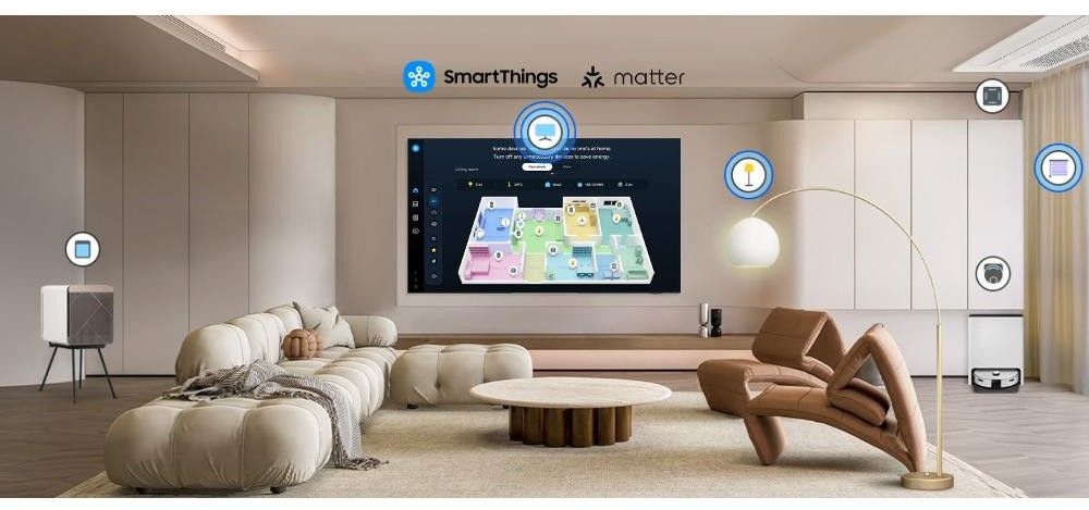 S integrovaným SmartThings Hub snadno propojíš a přizpůsobíš si všechna chytrá zařízení kompatibilní se SmartThings. Ovládej celou domácnost ze své TV.