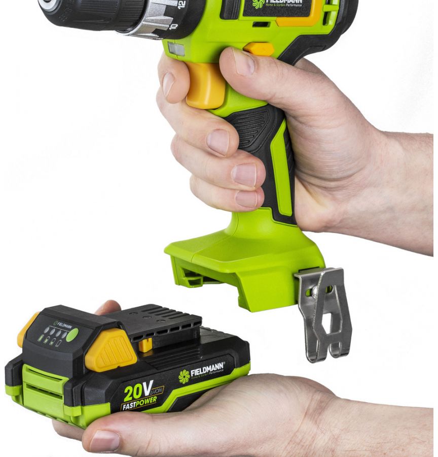 Jednoduše ovladatelná akumulátorová vrtačka FIELDMANN FDUV 70115-A, která díky funkci příklepu zvládne i vrtání do tvrdých materiálů. Právě díky svému univerzálnímu využití se stává často využívaným společníkem každého hobby kutila nebo domácího opraváře. Vrtačka je poháněna li-Ionovou baterií, jejíž celkové využití hlídá elektronická řídící jednotka a v kombinaci s maximálním kroutícím momentem 35 N.m. poskytuje silný výkon potřebný pro rychlé vrtání či šroubování.