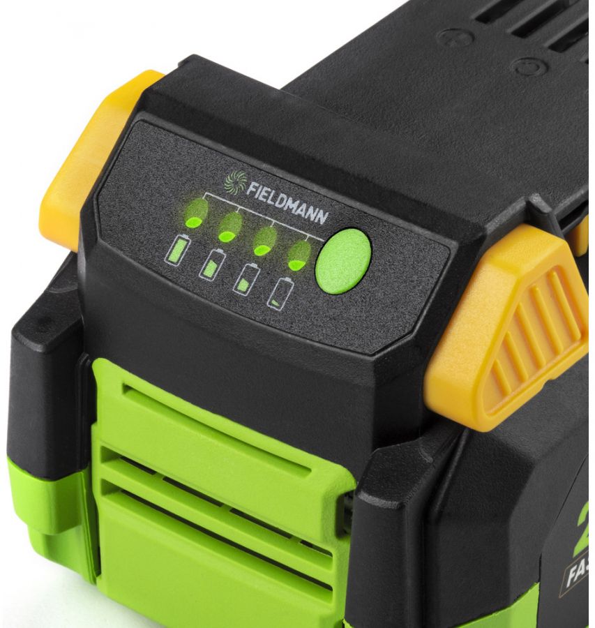 Li-Ion akumulátor renomované značky FIELDMANN představuje opravdovou špičku ve své kategorii. Je kompatibilní se všemi stroji řady AKU FAST POWER 20 V. Pro tento druh akumulátoru je typická extrémně dlouhá životnost i výdrž a především vyrovnaný výkon po celou dobu životního cyklu spolu s nízkou vahou.