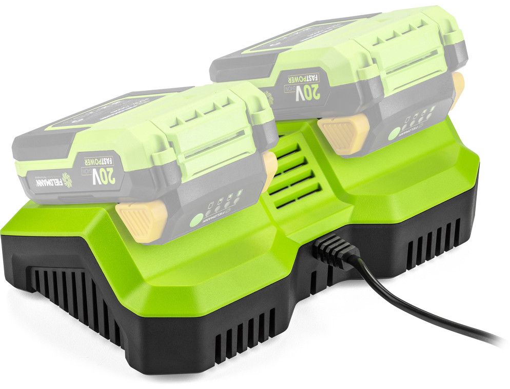 Li-Ion duální rychlonabíjecí stanice renomované značky FIELDMANN představuje opravdovou špičku ve své komoditě. Je kompatibilní se všemi stroji z aku řady FAST POWER 20V. Pro tento druh nabíječek je typický elektronický monitoring stavu nabití díky kterému ihned vidíte, zda nabíjení probíhá bez problému díky LED indikátoru. Největší výhodou této nabíječky je možnost nabíjení 2 baterií současně.