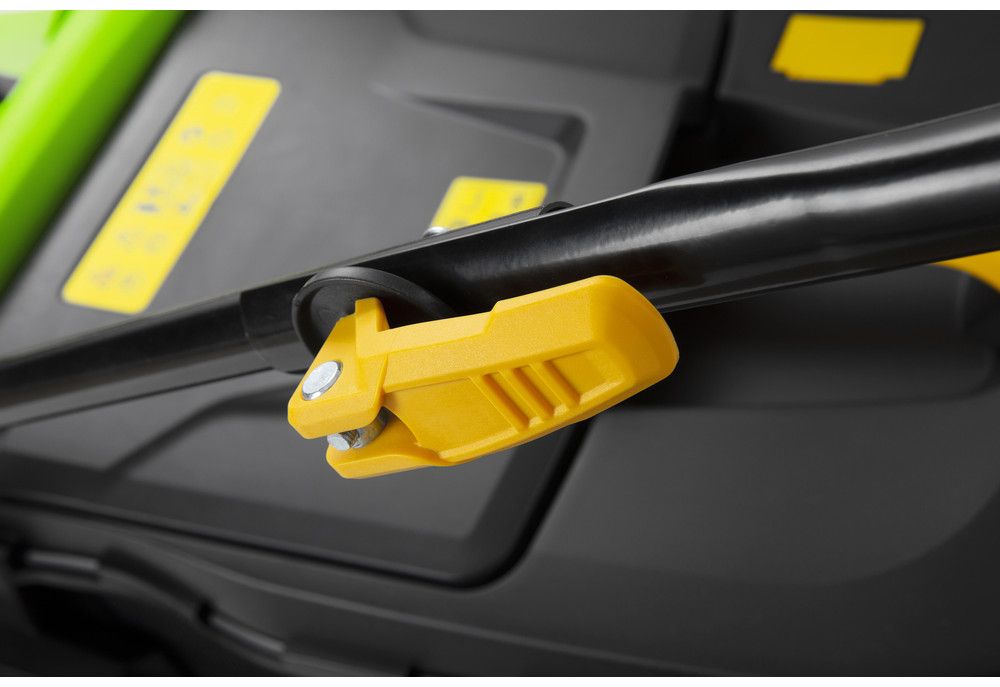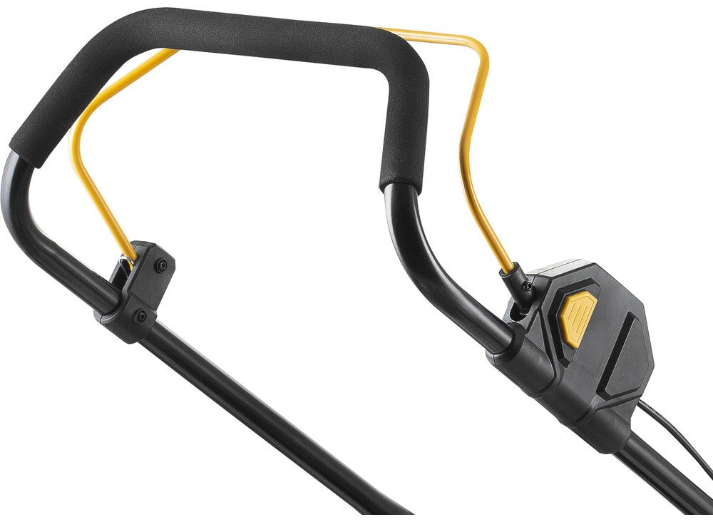 Bezpečnostní spínač brání náhodnému zapnutí čepele a robustní konstrukce z odolného plastu je zárukou dlouhé životnosti. Pro perfektní manipulaci se strojem je sekačka osazena robustními kolečky z odolného plastu.