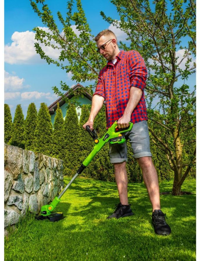 Akumulátorová strunová sekačka si poradí s každou trávou podél cest i v těsné blízkosti plotů a zídek.