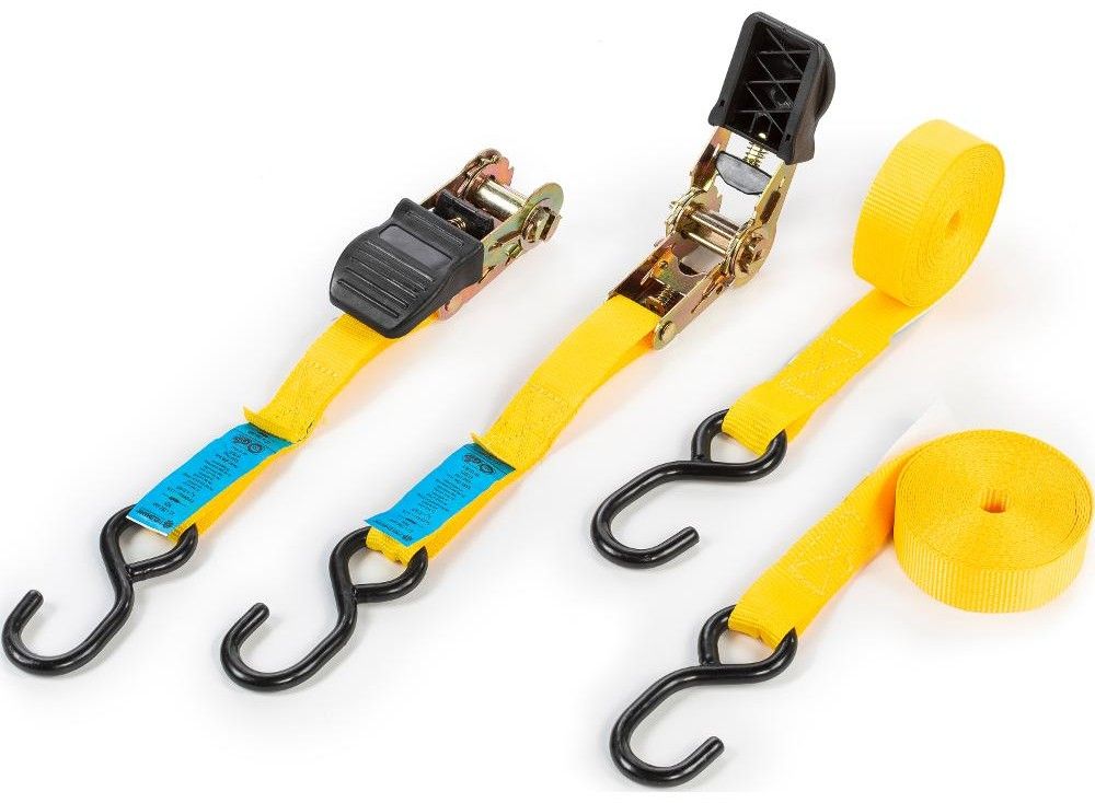 2 upínací popruhy s uzavřenou ráčnou a záchytnými háky.