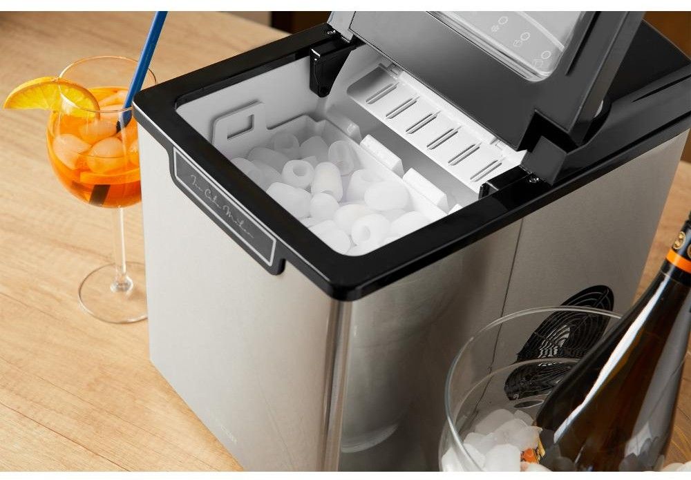 Kompaktní a přenosný výrobník ledu je ideální pro obytné vozy, lodě nebo malé kuchyně, všude, kde je dostupná zásuvka. Vyrobí kostky ledu za pouhých 9 minut.