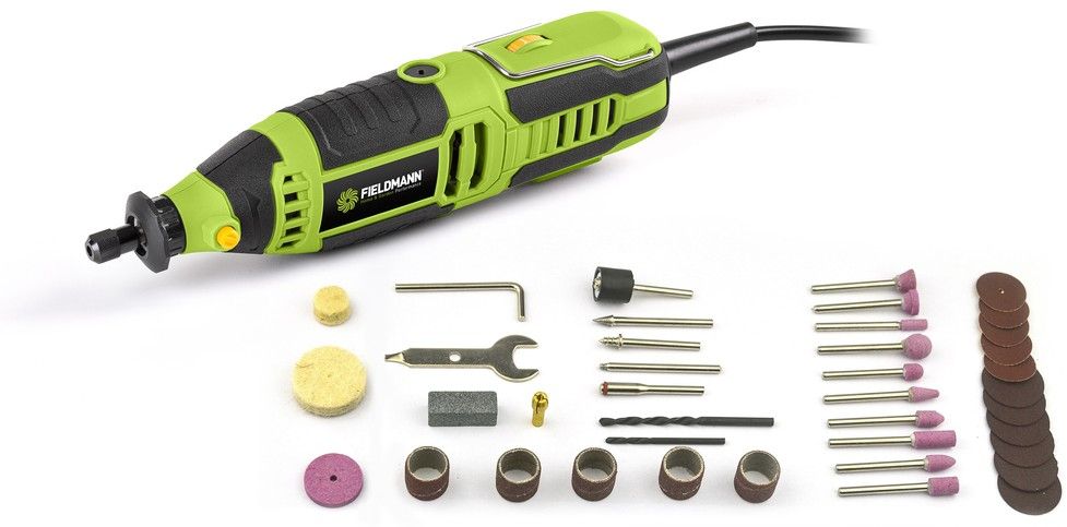 Skvěle propracovaná modelářská bruska ověřené značky FIELDMANN je všestranný univerzální nástroj pro domácí kutily, drobné řemeslníky i hobby nadšence. Jedná se o mini přímou brusku s výkonem 170 W a plynulou regulací otáček. Otáčky je možné regulovat v rozmezí 10 000 – 36 000 otáček za minutu. Je vhodná pro opracování jak měkkých, tak i tvrdých materiálů. Skvěle se drží a snadno i rychle v ní vyměníte pracovní nástavce. Navíc k ní obdržíte 40 kusů příslušenství zdarma. To vše doplněno o ergonomické madlo s měkčenou rukojetí.