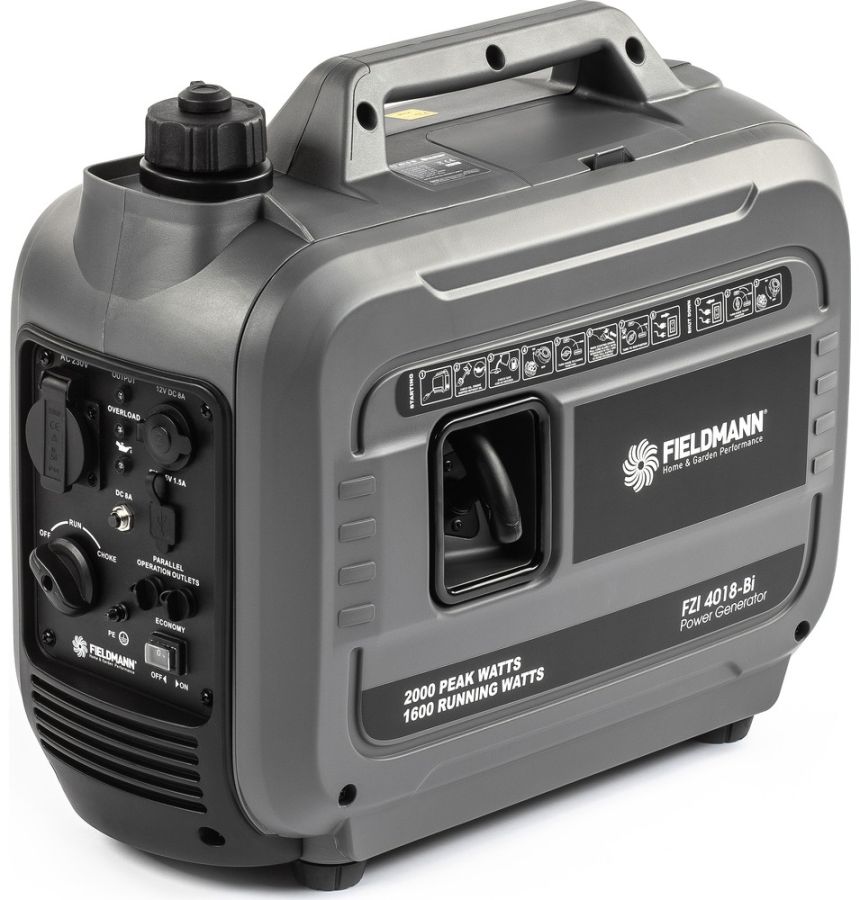 Invertní generátor FIELDMANN FZI 4018-bi spojuje výhody nejmodernější technologie invertorového motoru ve spojení s moderním designem, to vše s váhou pod 18 kg. Tento generátor je vyroben speciálně pro lidi na venkově, vlastníky plavidel, rybáře a majitele karavanů. Díky nejmodernějším použitým technologiím je ideální pro nabíjení baterií, notebooků, ipadů, mobilních telefonů a lehkých domácích spotřebičů díky zajištění stálého proudu bez jakýchkoliv větších výkyvů oproti klasickým rámovým stavebním generátorům.
