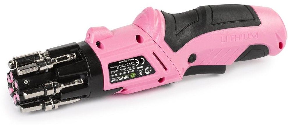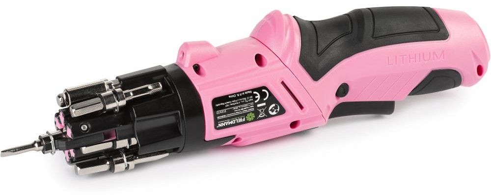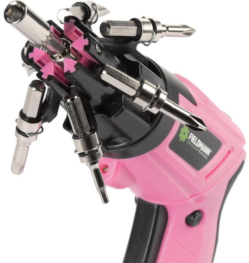 Tento aku šroubovák disponuje hlavicí se šesti bity umístěnými v zásobníku na otočných ramenech, což umožňuje snadnou výměnu jednotlivých bitů a snižuje riziko jejich ztráty. Požadovaný bit se jednoduše vyklopí z úložné pozice a zasune do sklíčidla. Na hlavici s bity je umístěn nástavec, který slouží jako redukce na krátké bity.