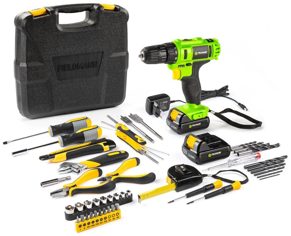 Praktická sada pro domácnost obsahující aku vrtačku 12V včetně 2ks baterií pro práci bez nutné pauzy na dobíjení. Dále sada obsahuje vrtáky, bity a základní nářadí. Vrtačka je určena k dotahování a povolování šroubů či vrutů, dále k vrtání do dřeva, kovu a plastů. Díky Li-ion akumulátoru je možné šroubovák kdykoliv dobíjet, aniž by se tím snižovala kapacita akumulátoru. Li-ion akumulátor ztrácí energii vlivem samovybíjení velmi pomalu a vydrží dlouho nabitý na plnou kapacitu. Další výhodou je náhradní baterie součástí balení zdarma.