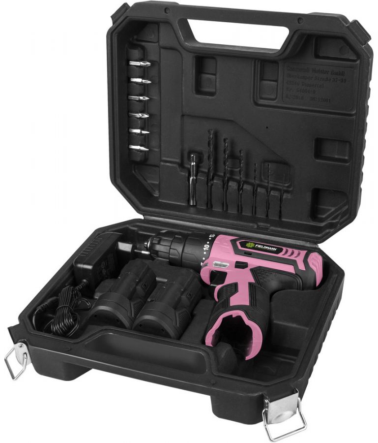 Léty prověřená česká značka nabízí kvalitní akumulátorovou vrtačku (nejen pro dámy) FIELDMANN FDV 10253-A v atraktivní růžové barvě. Výměnná baterie zajišťuje absolutní volnost pohybu bez nutnosti nešikovného tahání napájecího kabelu. Vrtačka je vhodná pro práci se dřevem, kovem nebo plastem. Díky dvourychlostní převodovce si sami nastavíte rychlost otáček, můžete si vybrat podle toho, zda potřebujete jen fofrem vyvrtat díry na poličku nebo chcete opatrně sešroubovat skříňku bez strhání závitů. Pro preciznější výsledek je vrtačka vybavena LED osvětlením, které určitě využijete při práci v tmavých koutech místnosti. Veškeré příslušenství můžete skladovat v pevném plastovém kufříku, kde bude vaše nářadí uloženo pěkně pohromadě a připravené na další projekt.