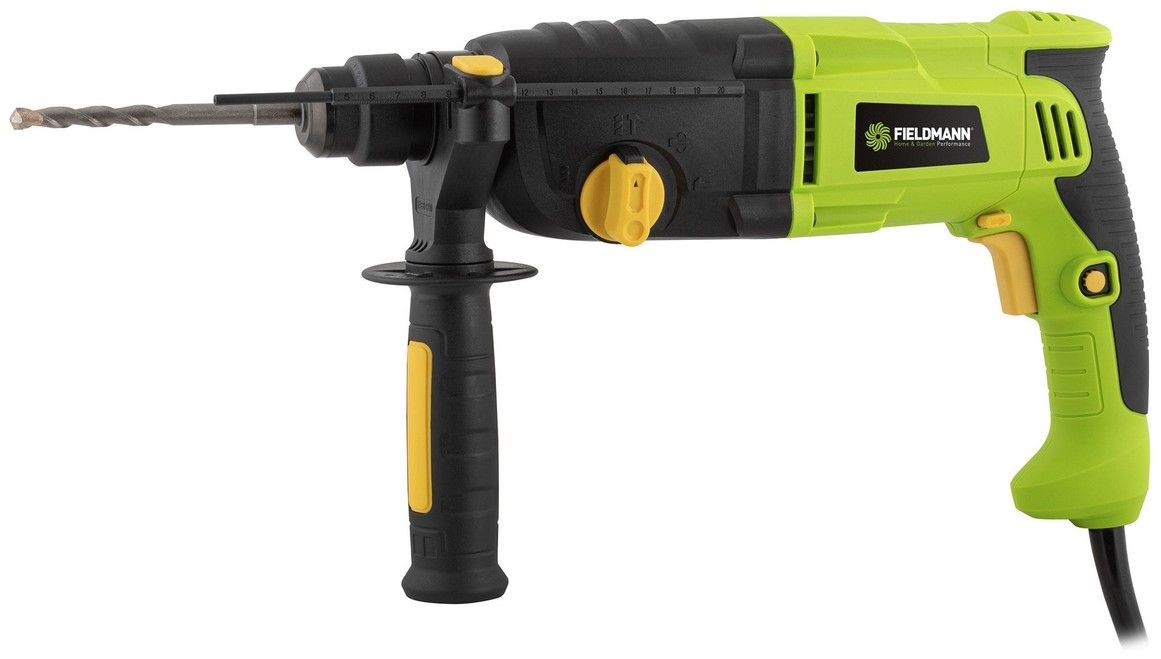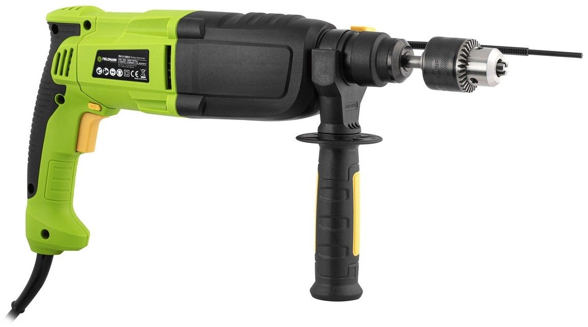 Příklepová vrtačka je nepostradatelným pomocníkem každého seriózního kutila. Tam, kde nestačí obyčejná vrtačka, přichází na řadu příklep. FIELDMANN FDV 211050-E je vyzbrojena 1 050 W příkonem, s jehož pomocí je schopna vyvrtat díru hloubky 26 mm do betonu, 13 mm do kovu a až 42 mm do dřeva. V porovnání ceny a výkonu nenajdeme mnoho lepších produktů na trhu. Praktické rychloupínací sklíčidlo SDS PLUS zaručuje jednoduchou výměnu mezi 3 vrtáky a 2 majzlíky, čímž usnadňuje práci a šetří čas. V horní části vrtačky najdete otočný ovladač, s jehož pomocí si nastavíte nářadí tak aby vyhovovalo právě prováděné práci. Intuitivní používání vrtačky dělá z tohoto nářadí šikovného pomocníka do každé dílny nebo domácnosti, a napájecí kabel dostatečné délky vám umožní práci na jakémkoliv projektu, který si vymyslíte.