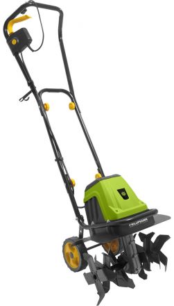Výkonný elektrický kultivátor s pracovním záběrem 40 cm. Šest ocelových nožů o průměru 21 cm, které pohání elektromotor o příkonu 1400 W bez větší námahy připraví záhon pro novou výsadbu či setí. Převodová skříň je vyrobena ze slitiny hliníku a všechny převody jsou ocelové. Proti odlétajícím kusům hlíny, případně kamenům je obsluha chráněna pevným ocelový krytem. Podpůrná kolečka využijete nejen při transportu, lze s nimi také omezit hloubka kultivace. Pro efektivní skladování lze madlo kultivátoru složit.