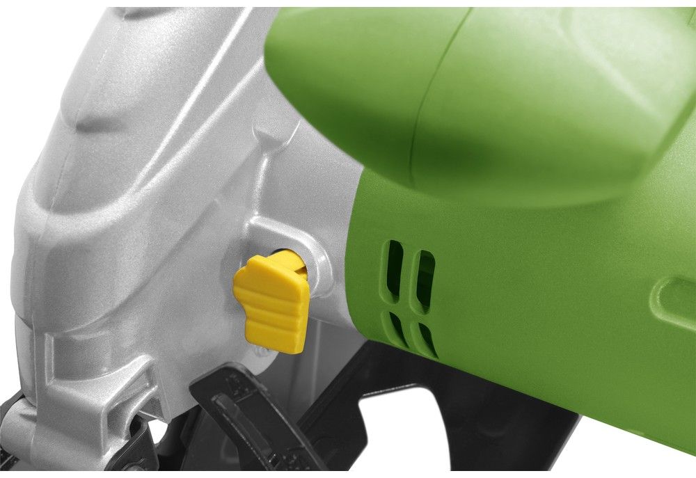 Kotoučová pila se pyšní silným 1300 Wattovým motorem s měděným vinutím, který zaručí snadné přeříznutí dřevěných materiálů do hloubky 60 mm s dodaným kotoučem o průměru 185 mm. Na pile je možné nastavit různé úhly řezu pro přesné zapasování různých řezaných materiálů do sebe.