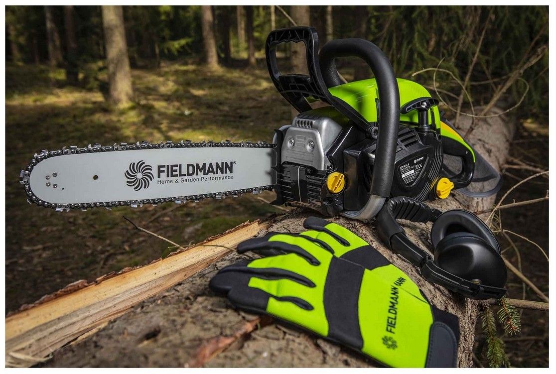 Benzínová pila Fieldmann FZP 5816-B odvede velmi dobrou práci při prořezávání větví, kácení menších stromů, řezání palivového dřeva a obecně při údržbě zahrady a okolí domu. Výborně vyvážený, nepříliš těžký, a přitom výkonný stroj je vybaven motorem o obsahu 58 cm3. Tento dvoutaktní jednoválec pak nabídne výkon 2,4 kW. Startování pily se studeným motorem je usnadněno systémem zapalování C.D.I., takže ani v zimě není pro nastartování potřeba velká fyzická síla. Lišta optimální délky 40 cm a hmotnost 6 kg zaručuje uživateli při práci obratnost. Ovladatelnost pily podporuje také protiskluzová úprava rukojeti. Standardem stroje jsou integrované bezpečnostní prvky, jako je bezpečnostní řetězová brzda pro okamžité zastavení řetězu, která chrání před zpětným rázem, a pevná zubová opěrka na konci řetězu. Samozřejmostí je také snadná údržba. Kvalitní řetěz Fieldmann je mazán automatickou olejovou pumpou, což snižuje tření a zvyšuje životnost řetězu, sílu mazání lze pohodlně nastavit pouhým šroubovákem. Kromě nezbytného nářadí pro manipulaci s lištou a řetězem, je součástí balení také kalibrovaná nádoba pro přípravu palivové směsi v odpovídajícím poměru.