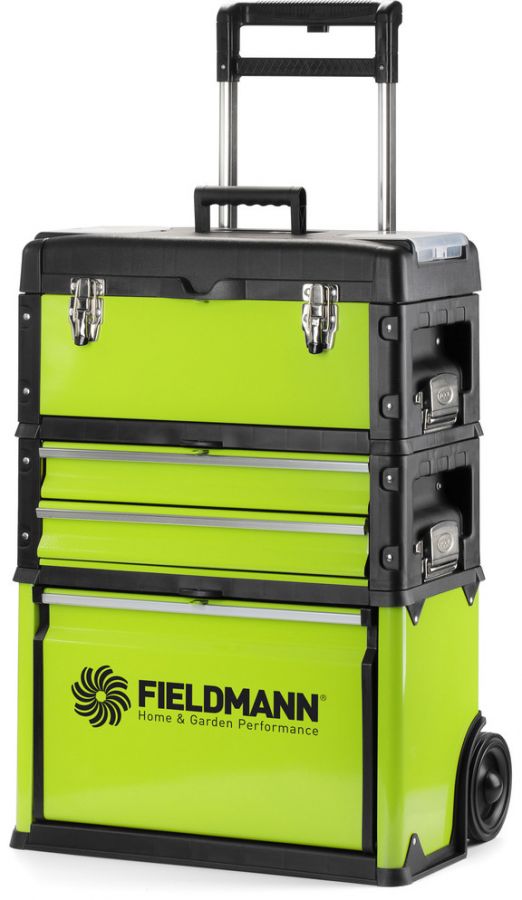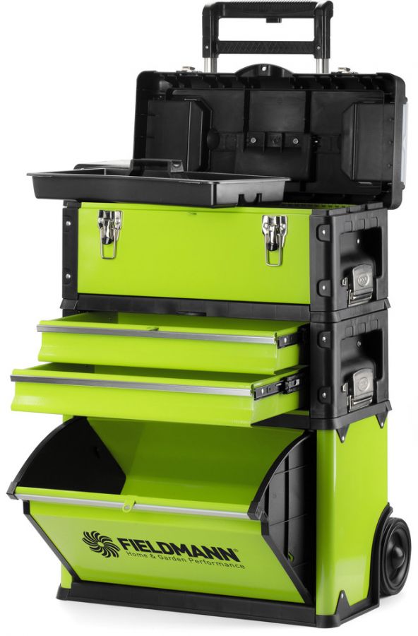 Třídílný box na nářadí FDN 4150, je vyrobený z kovu, má tedy bytelnou konstrukci, která zajistí odolnost i bezpečí pro uložené věci. S jeho pomocí snadno, rychle a bez větší námahy dopravíte množství nástrojů, příslušenství a drobného materiálu i na větší vzdálenosti např. na chalupu, na stavbu apod.