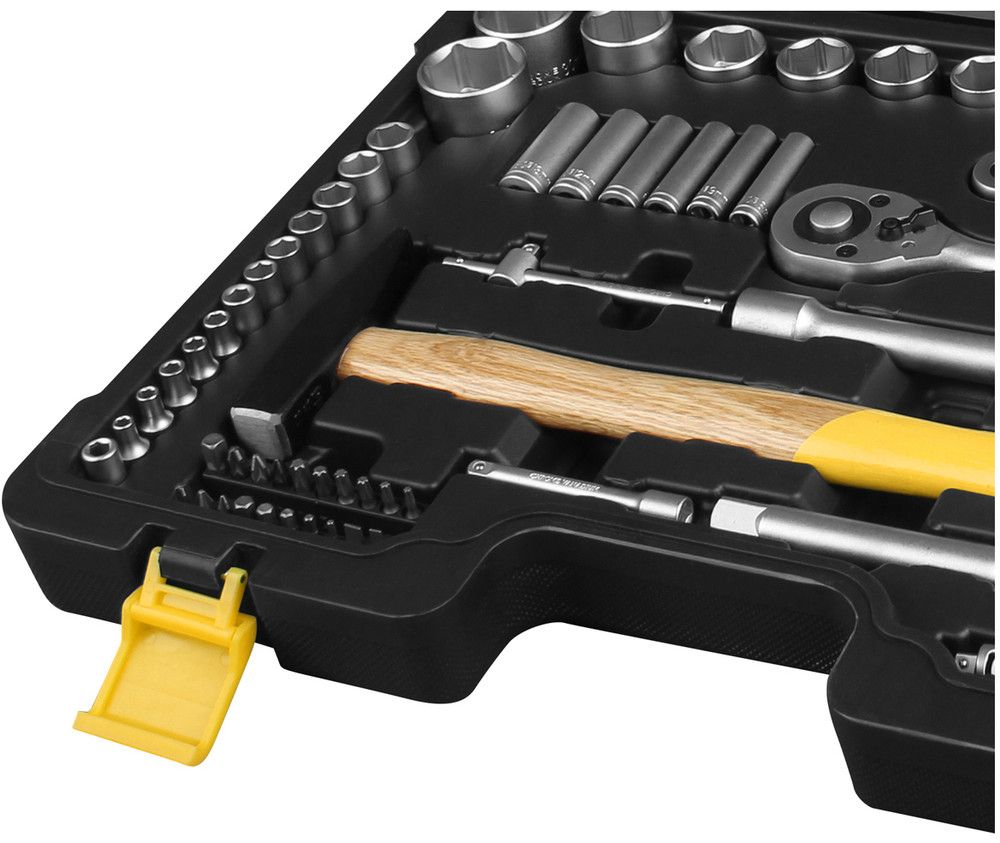 Sada nářadí skládající se z osmdesáti pěti dílů s 1/4“ a 1/2“ palcovou ráčnou a nástrčnými hlavicemi od čtyřech milimetrů do třiceti dvou milimetrů v CR-V kvalitě. Nedílnou součástí sady jsou kleště diagonální, s dlouhými čelistmi a kleště s posuvným kloubem. V sadě také nechybí sada stranových klíčů od šesti do dvaceti sedmi milimetrů, sada šroubováků, kladívko, majzlíky, pětimetrový metr i nůž. Nářadí je uloženo v pevném plastovém kufříku s ergonomickou rukojetí, jejíž umístění zajišťuje otevření kufříku jen ze správné strany tak, aby se nářadí nevysypalo ven.