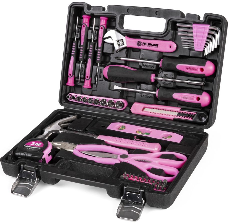 Stylová růžová sada FIELDMANN v praktickém plastovém kufříku v sobě ukrývá 51 dílnou sadu nářadí, která se bude hodit nejen každé kutilce, ale též každému členu domácnosti nejen v rodinné dílně, ale též na zahradě. Jednotlivé nářadí je vyrobeno z odolného materiálu a opatřeno pohodlnými ergonomické úchopy pro ještě snadnější práci každého člena domácnosti.