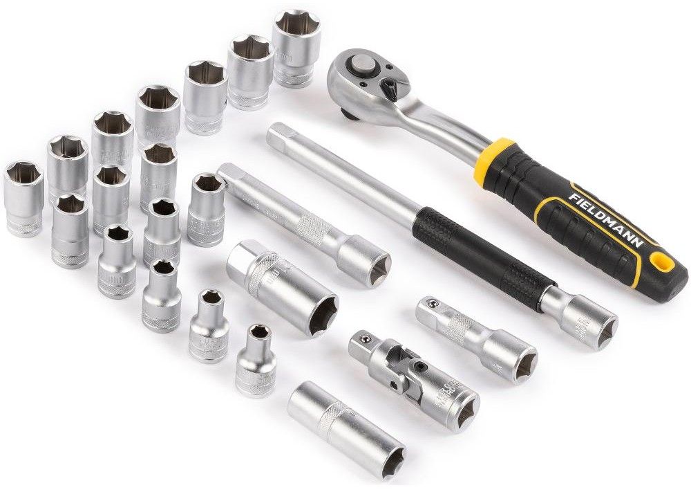 Gola sada čítající 23 kusů zajisté najde své upotřebení v každé dílně, ale neztratí se ani v panelákovém bytě. 1/2“ ráčna a pasující sada hlavic si poradí s každým závitem. Variabilita tohoto náčiní je velmi široká a skvěle doplní sbírku nářadí každého domácího opraváře. Kufřík pojme všechny různé nástrčné bity, včetně hlavice na motorové svíčky. Sada Fieldmann FDG 5022-23R tedy určitě udělá radost i amatérskému autoopraváři. Úložný kufřík z pevného plastu vám navíc pomůže udržet pořádek v dílně a jednoduše skladovat všechno potřebné po ruce.