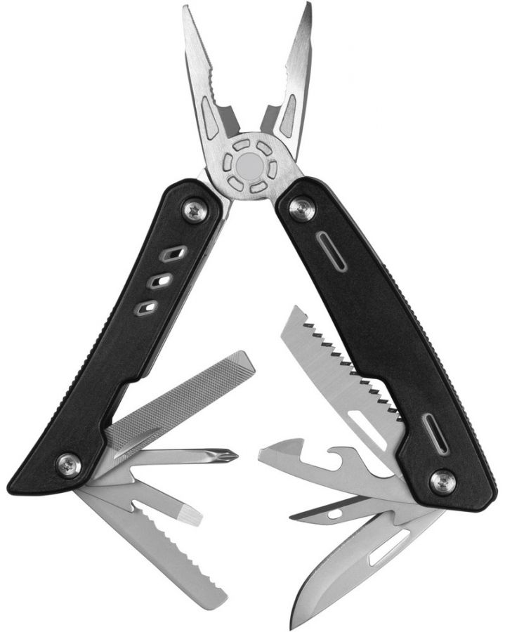 Multifunkční kleště s celkem 12 funkcemi v praktickém pouzdru na opasek.
